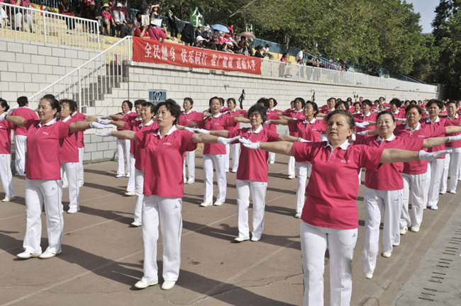 5月19日上午,新疆老年協(xié)會第二屆“新可緣杯”康姿百德健身操比賽在新疆教育學院舉行,來自伊犁州、巴州、克拉瑪依等20支代表隊的800多名中老年健身愛好者,同聚烏魯木齊,一展健身風采。我公司董事長李銀祥親赴現(xiàn)場,為邀請賽開幕式致辭并為獲勝者頒獎。 康姿百德健身操自2012年5月開始在新疆推廣,僅一年的時間,在全疆就有20多個地州市縣6萬人參加跳舞健身??底税俚陆∩聿俸唵我讓W,音樂優(yōu)美,吸引著更多的中老年朋友參加到健身活動中,掀起了新一輪的康姿百德健身熱潮。