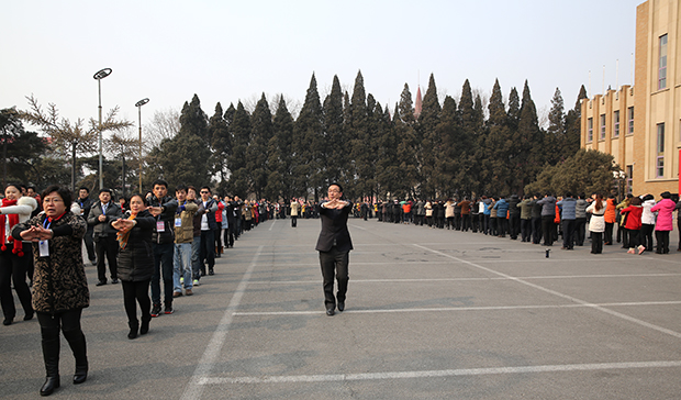 2月19日,康姿百德公司第三套健身操在北戴河勞動人民文化宮廣場正式推廣啟動, 參加2014年首屆經(jīng)理研修會的所有人員參加活動,啟動儀式在雄壯宏偉的中華人民共和國國歌聲中開始。 初春的寒冷抵擋不住大家內(nèi)心涌動的暖流,在料峭的寒風(fēng)中,大家排成四列,在教練老師的帶領(lǐng)下,和著明快的音樂,伸臂扭腰,提臀墊步,向人們傳遞著健康、展示著美麗。董事長李銀祥率先垂范,帶頭跳操,雖然天氣十分寒冷,但他卻堅持跳到了最后,用自己的實際行動感染和鼓舞著大家。 大家一致表示,一定會把這份關(guān)愛健康的公益事業(yè)繼續(xù)下去,把康姿百德第三套健身操推廣好、宣傳好,吸引更多的人加入到全民健身的隊伍中來。