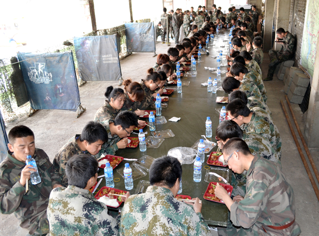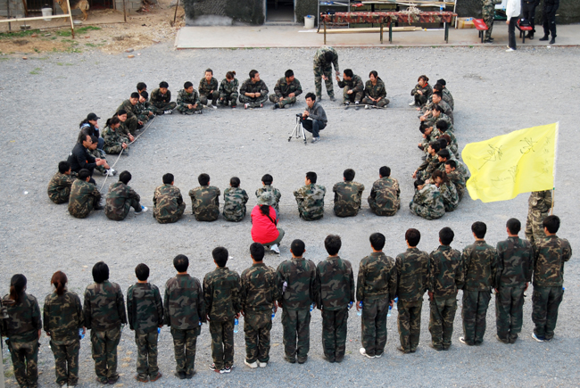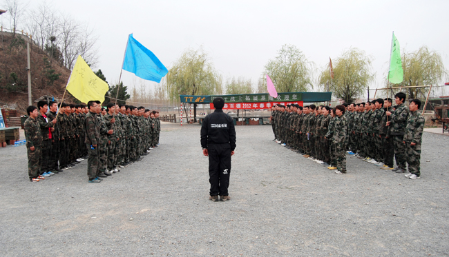 上午8時(shí),簡短的破冰活動(dòng)后,教練員對(duì)全天活動(dòng)作出詳細(xì)部署并提出嚴(yán)格要求。全體學(xué)員迅速組建“蒼狼”、“勇者”、“亮劍”和“蟑螂”四個(gè)團(tuán)隊(duì)并快速融入各自的團(tuán)隊(duì),高舉團(tuán)隊(duì)旗幟、高呼團(tuán)隊(duì)口號(hào)、高唱團(tuán)隊(duì)隊(duì)歌,大家不畏困難、齊心協(xié)力,圓滿的完成了全天拓展項(xiàng)目。