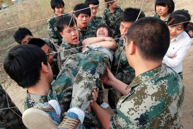 “極速60秒”、“電網(wǎng)逃生”、“孤島求生”、“盲人方陣”等項(xiàng)目檢驗(yàn)了學(xué)員之間的信任與責(zé)任、溝通與合作、“小團(tuán)體”和“大團(tuán)隊(duì)”的關(guān)系處理。在“極速60秒”環(huán)節(jié),一次次失利、一次次頭腦風(fēng)暴,最終取得成功時(shí),大家懂得了溝通與配合對(duì)團(tuán)隊(duì)有多么重要?!肮聧u求生”等項(xiàng)目更是讓學(xué)員們深刻體會(huì)到團(tuán)隊(duì)的概念。讓大家體驗(yàn)?zāi)繕?biāo)與結(jié)果的差異性,引發(fā)換位思考,反思并總結(jié)領(lǐng)導(dǎo)與執(zhí)行過程中脫節(jié)的真正原因。無論是大家小心翼翼的將隊(duì)友抬過電網(wǎng),還是啞巴與盲人搭建木橋以實(shí)現(xiàn)荒島求生,都告訴大家信任是團(tuán)隊(duì)合作的基礎(chǔ),團(tuán)隊(duì)合作是通向成功的唯一途徑?!懊と朔疥嚒杯h(huán)節(jié),學(xué)員們吃了當(dāng)頭一棒。所有人蒙上雙眼,無法語言交流,最終由于缺乏有效溝通和默契配合,大家以失敗告終。通過此類項(xiàng)目,大家不僅意識(shí)到自我責(zé)任,也更加懂得關(guān)愛和信任團(tuán)隊(duì)中的每一個(gè)人,認(rèn)識(shí)到高效有序的溝通對(duì)于團(tuán)隊(duì)至關(guān)重要。