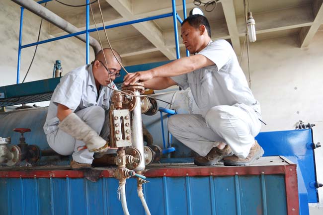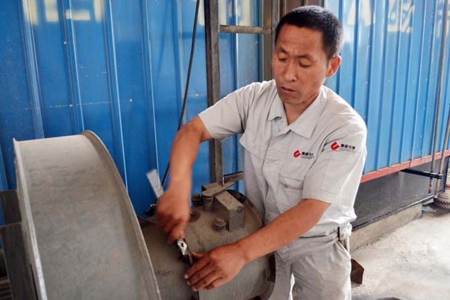 馮國成在給工友講解維修注意事項 在本職崗位上,他緊密聯(lián)系工作實際,堅持刻苦鉆研業(yè)務(wù),攻克了生產(chǎn)中存在的許多技術(shù)難題。充分發(fā)揮了勞模的骨干和帶頭作用,支持和幫助其他工友提升業(yè)務(wù)素質(zhì)。瞧,他身邊這位全神貫注的年輕人,沒準(zhǔn)兒就是下屆的勞動模范呢!
